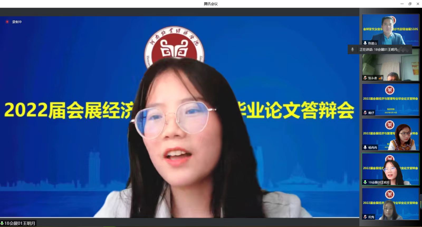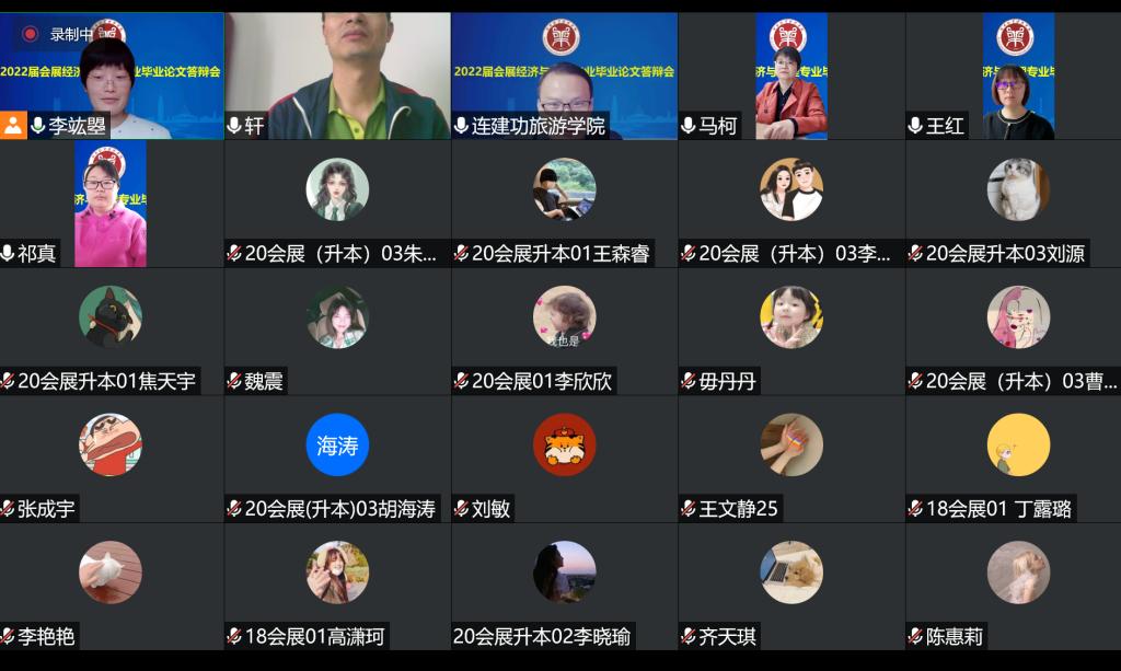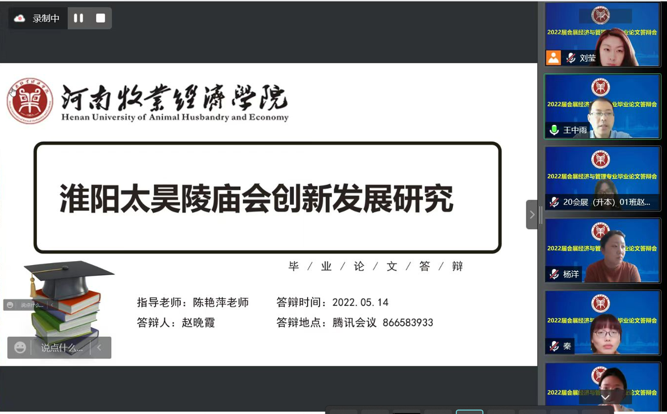 5月14日,williamhill英国中文2022届会展经济与管理本科专业顺利完成214人毕业论文答辩工作。受疫情影响,经学院学术委员会研究,此次答辩师生全部通过腾讯会议采用线上方式进行,分为8个答辩组,院长王德静、副院长王中雨等48位教师参与全程答辩。答辩还吸引了2019级、2020级部分同学参与观摩。