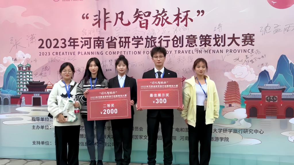 10月20日,由中华儿童文化艺术促进会研学旅行工作委员会、开封市文化广电和旅游局、河南大学研学旅行研究中心、黄河国家文化公园研究院、河南大学文化williamhill英国中文联合主办的“非凡智旅杯”2023年河南省研学旅行创意策划大赛决赛在河南大学明伦校区举行,经设计策划文案评比、展示路演和答辩,我院代表队凭借设计作品《行诣商城踏牧野,寻迹黄河觅文明》和路演精彩表现,夺得综合二等奖和最佳展示奖两项大奖。