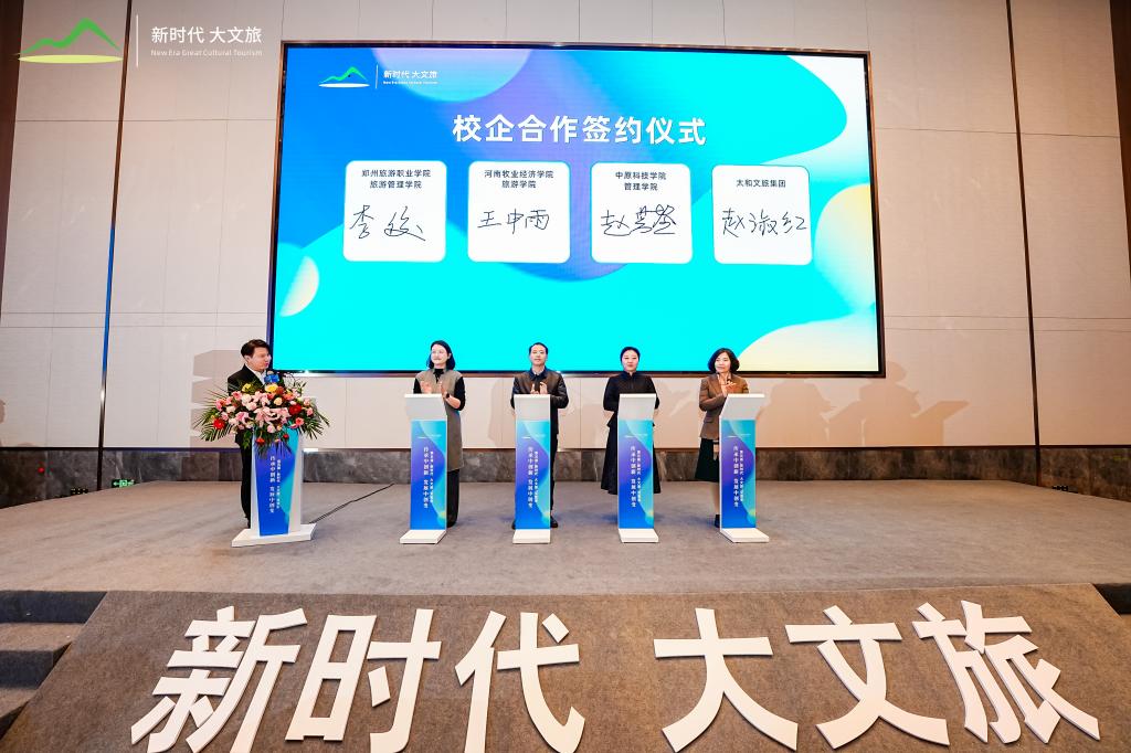 本届“新时代 大文旅”交流会历时2天,举办了2场主交流会、3场平行交流会,设置了22个企业展位。我院副院长王中雨、会展与经济管理教研室主任连建功、旅游管理教研室主任甄莎及部分专业教师应邀参与此次会议,并与太和文旅集团签署校企合作协议。未来,我院将通过产学研一体化模式共同培育文旅人才,积极优先培养市场紧需人才,以推动我省文旅产业的高质量发展。