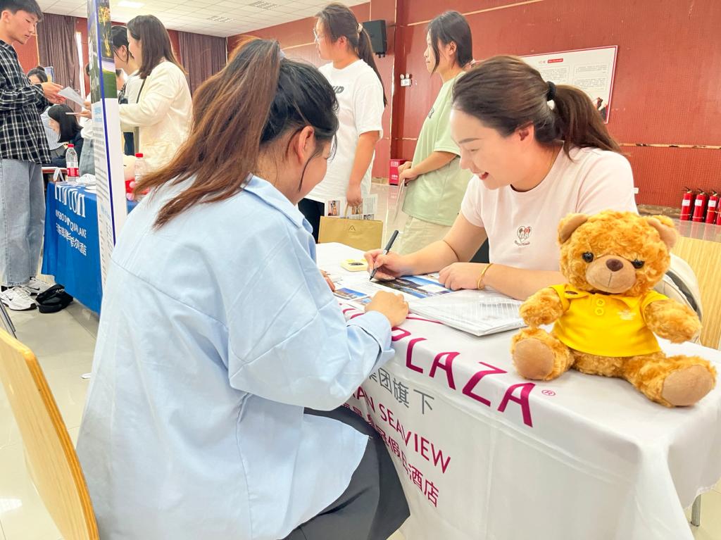 为助力学生顺利求职,酒店管理教研室主任张众教授、刘莹老师为同学们提供政策咨询、简历优化和面试技巧提升等指导。同学们对现场就业指导服务颇有感触,能够帮助她们快速定位目标企业,提高面试成功率,也让他们感受到了学校对实习生的关怀。