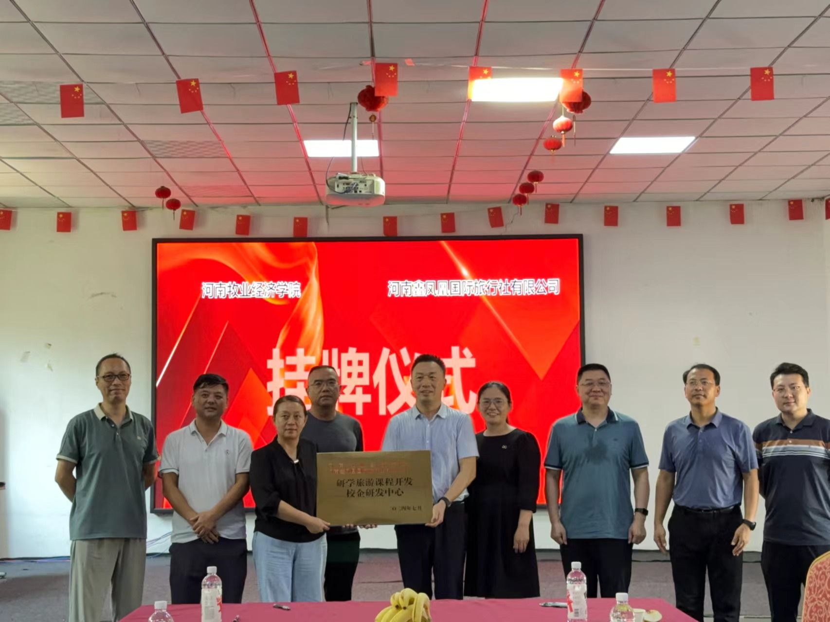 9月20日,我校科学技术处副处长史岳鹏、副处长张红霞,williamhill英国中文党委书记权太举、副院长王中雨、科研办公室主任王泽峰、会展管理教研室主任连建功一行六人前往河南鑫凤凰国际旅行社有限公司、河南省和光月色农文旅发展有限公司,举行“校企研发中心”合作协议签订和揭牌仪式,并与两家企业开展座谈。