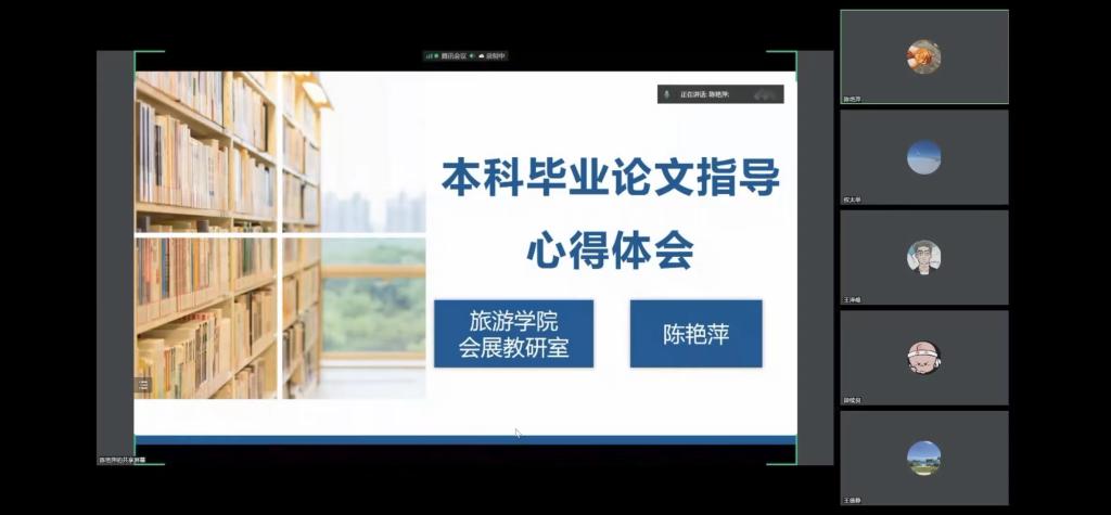 陈道山副院长从毕业论文的界定、写作要求、文献搜索、研究方法、结构与内容、论文规范、论文评价、学术不端等方面讲解了2023届本科毕业论文写作的注意事项,特别提出毕业论文写作中一定要运用好“两性一度”标准,严把毕业论文质量关。会展经济与管理教研室陈艳萍老师结合自己指导的2021届省级优秀学士学位论文的经历,从学生和教师两个角度谈了自己的感悟,她认为学生写作水平参差不齐,但写作态度和指导教师的责任心、耐心决定着论文写作质量的高低。随后与会老师从毕业论文选题、审题、指导、学生管理、规范及要求、论文查重、毕业论文验收、毕业论文系统等方面进行了交流,为我院2023届本科毕业论文工作提供了诸多有益思路。