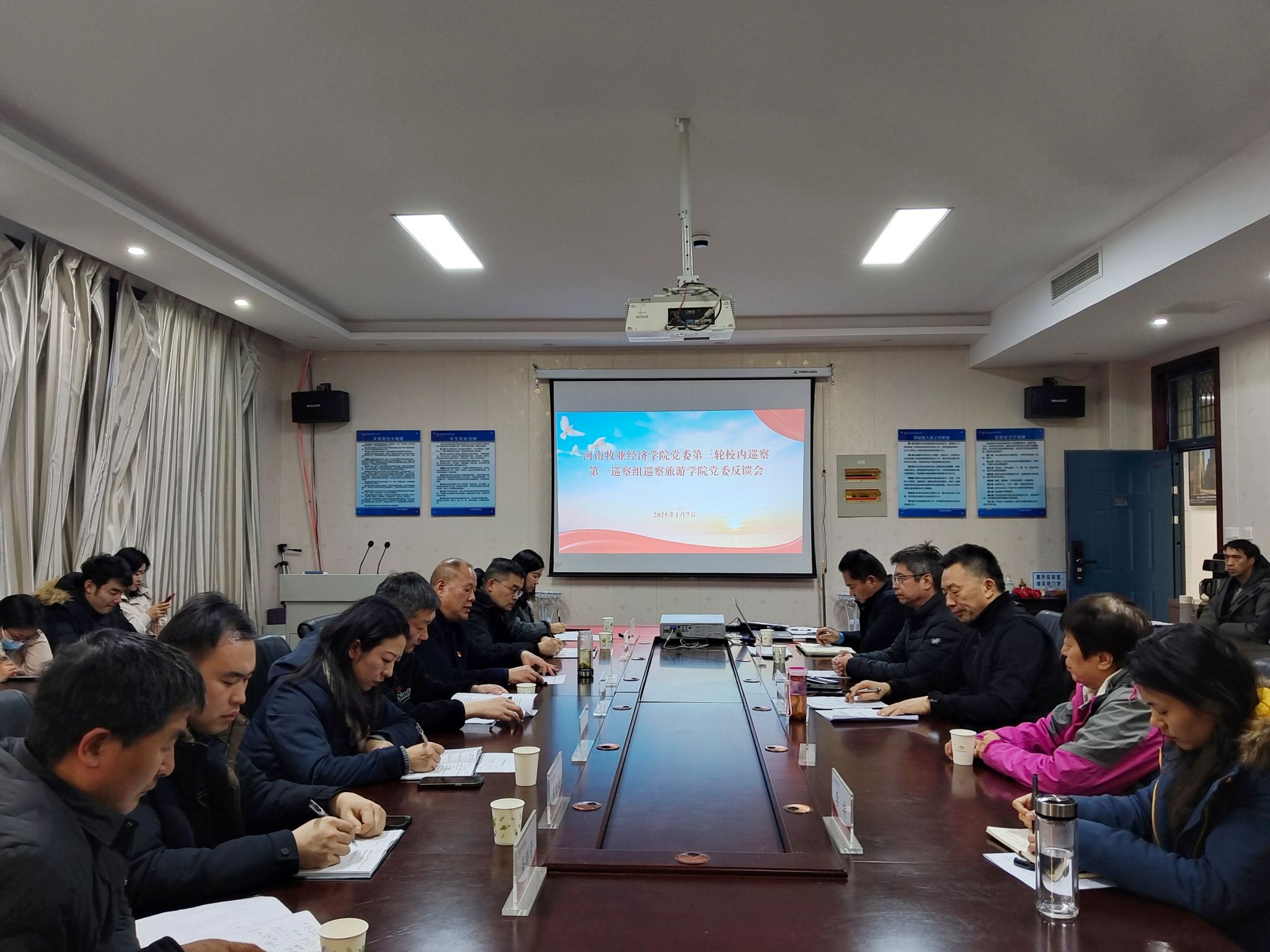 根据学校党委巡察工作统一部署,2025年1月7日下午,学校党委第三轮校内巡察第一巡察组巡察williamhill英国中文党委反馈会在二号楼C423会议室顺利召开。校党委巡察工作领导小组成员、巡察办主任马佩英,第一巡察组组长林浩,副组长袁三军、王莉,成员彭新安、魏迪、马群晋出席会议。williamhill英国中文领导班子成员、科级干部(含教研室主任、副主任)、教师代表参加会议,会议由williamhill英国中文党委书记权太举主持。