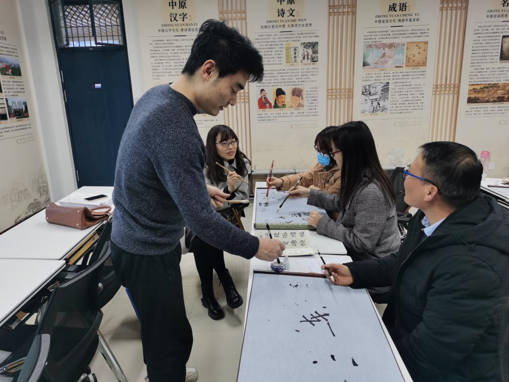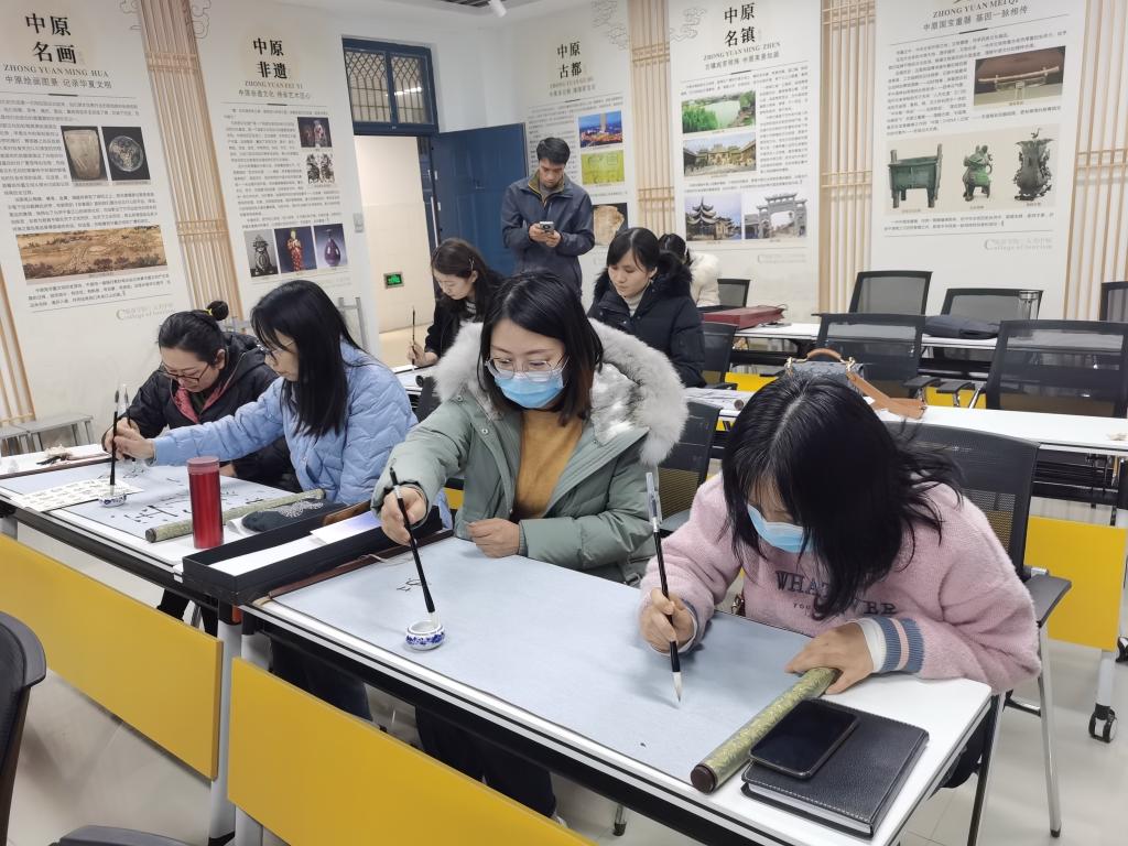 书法兴趣小组的老师认真听,踏实练,主动与陈老师交流练习心得,老师们之间也不时分享着书法学习的乐趣。