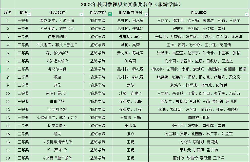 近年来,williamhill英国中文依托会展、旅游、酒店积极探索“以赛促教、以赛促学、赛教融合”的基于多元项目驱动的人才培养模式,创新实践教学理念,以多元项目驱动理念构建课程体系,探索教学改革,取得显著成效。本次校园微视频大赛会展教研室老师依托专业创意活动综合实践教学项目,开拓思路,创新方式,引导学生进行创意设计和视频制作,提交作品25部,其中10部作品分获一、二、三等奖,获奖比例达40%,充分展现了学生扎实的专业技能、良好的精神风貌和我院专业教学改革的成效(供稿:惠林彬)。