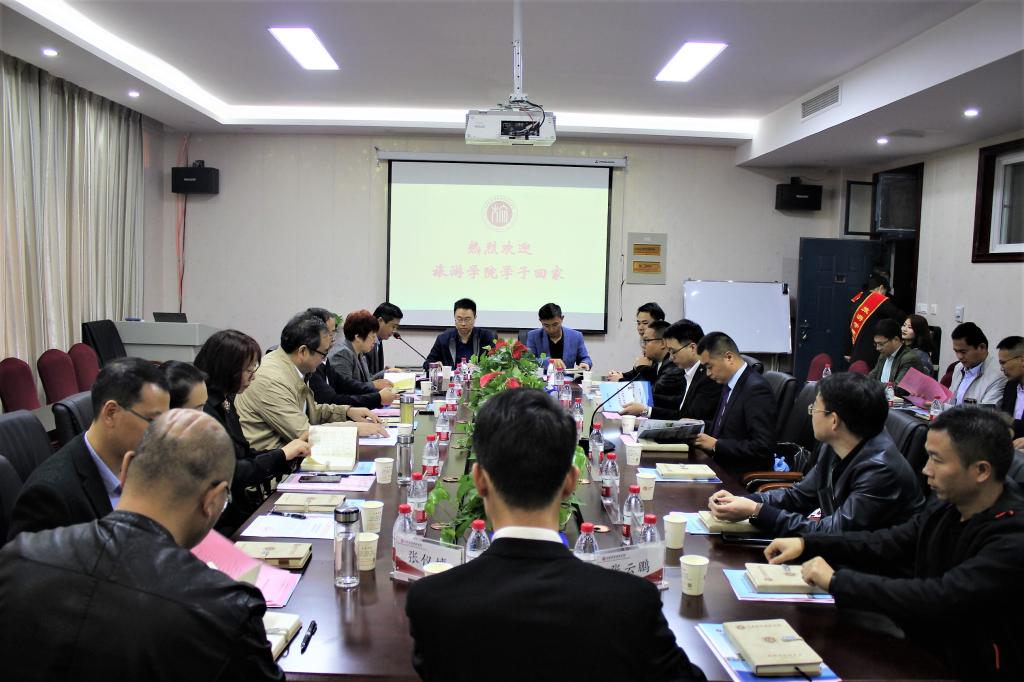 20201017日上午,williamhill英国中文校友会成立大会在二号楼C423会议室隆重举行。副校长张伟、校友办综合管理科长董青,学院科级以上干部、校友代表及教师代表40余人相聚在美丽的龙子湖畔,畅叙母校情谊,共度美好时光。大会由院党委副书记陈明主持。