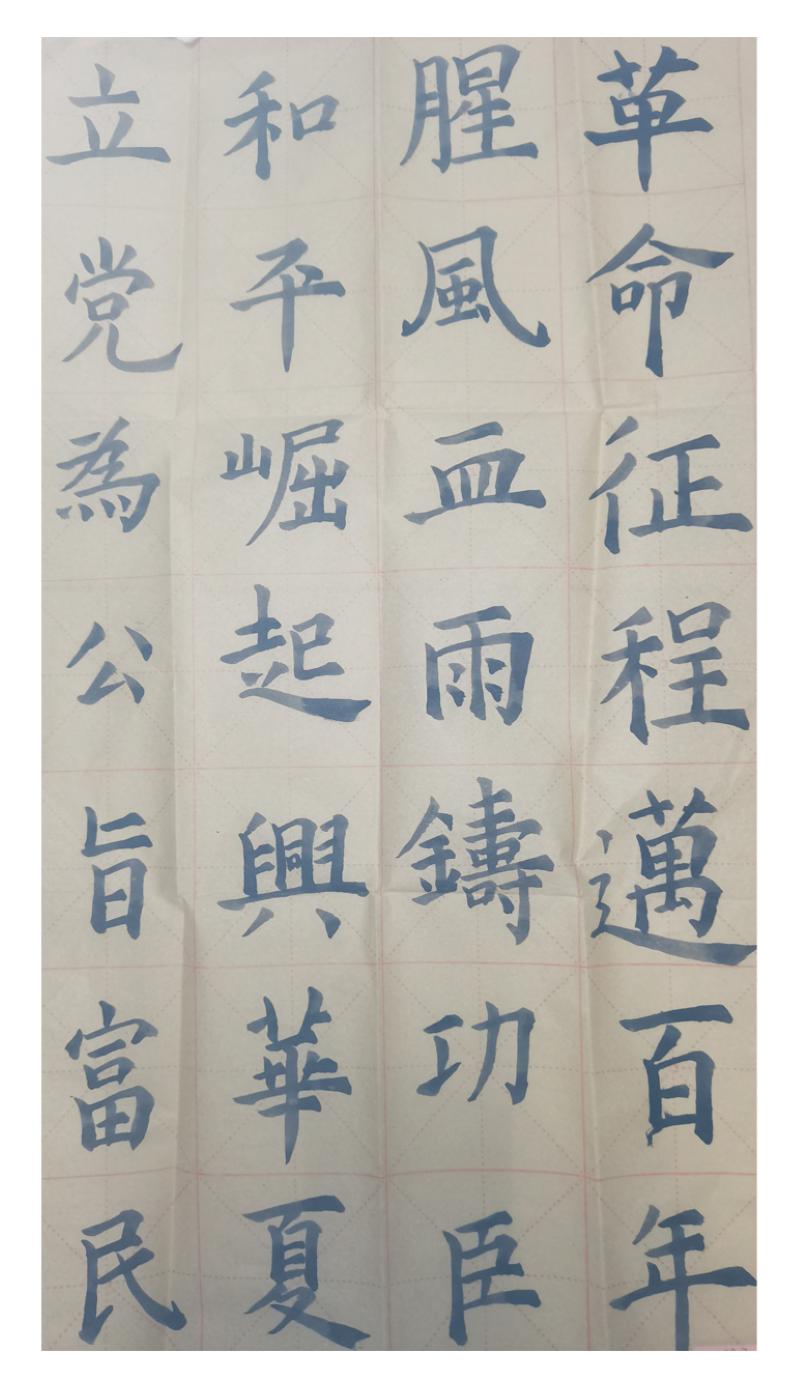 活动开展以来,各班级高度重视,切实把此次活动作为加强宣传党的光辉历程的良好契机,广泛动员,周密安排,广大学生积极参与,书法作品紧扣活动主题,对党的革命精神和优良作风进行了生动诠释与展现、充分展现了广大学生自觉把个人成长成才与党和国家的繁荣发展紧密结合的高尚情怀和精神风貌。经评审,共评选出一等奖1篇,二等奖1篇,三等奖1篇。