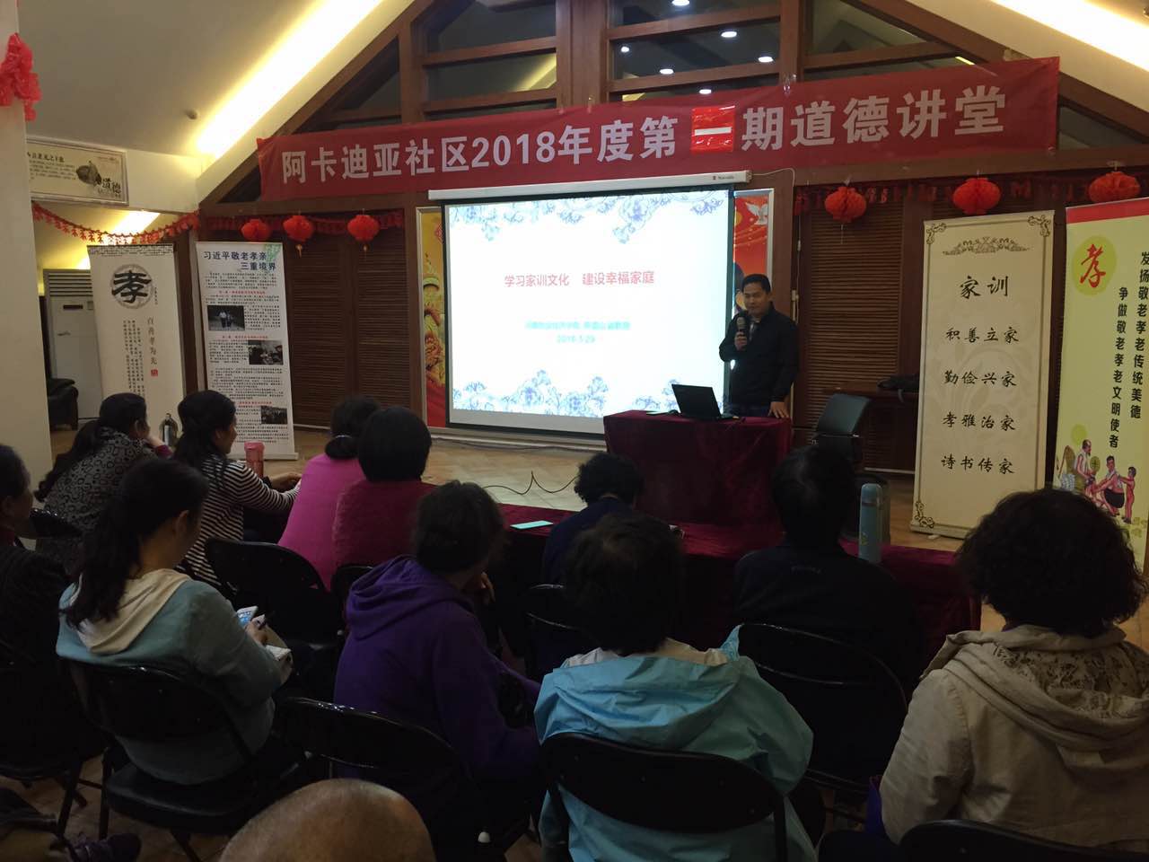 为了弘扬优秀民族传统文化,践行社会主义核心价值观,根据学校“学习贯彻十九大 文明单位社区行”活动计划,2018年3月29日下午,williamhill英国中文组织老师走进阿卡迪亚社区,以“家风家教”为主题,为社区居民带去了一场精神盛宴。
