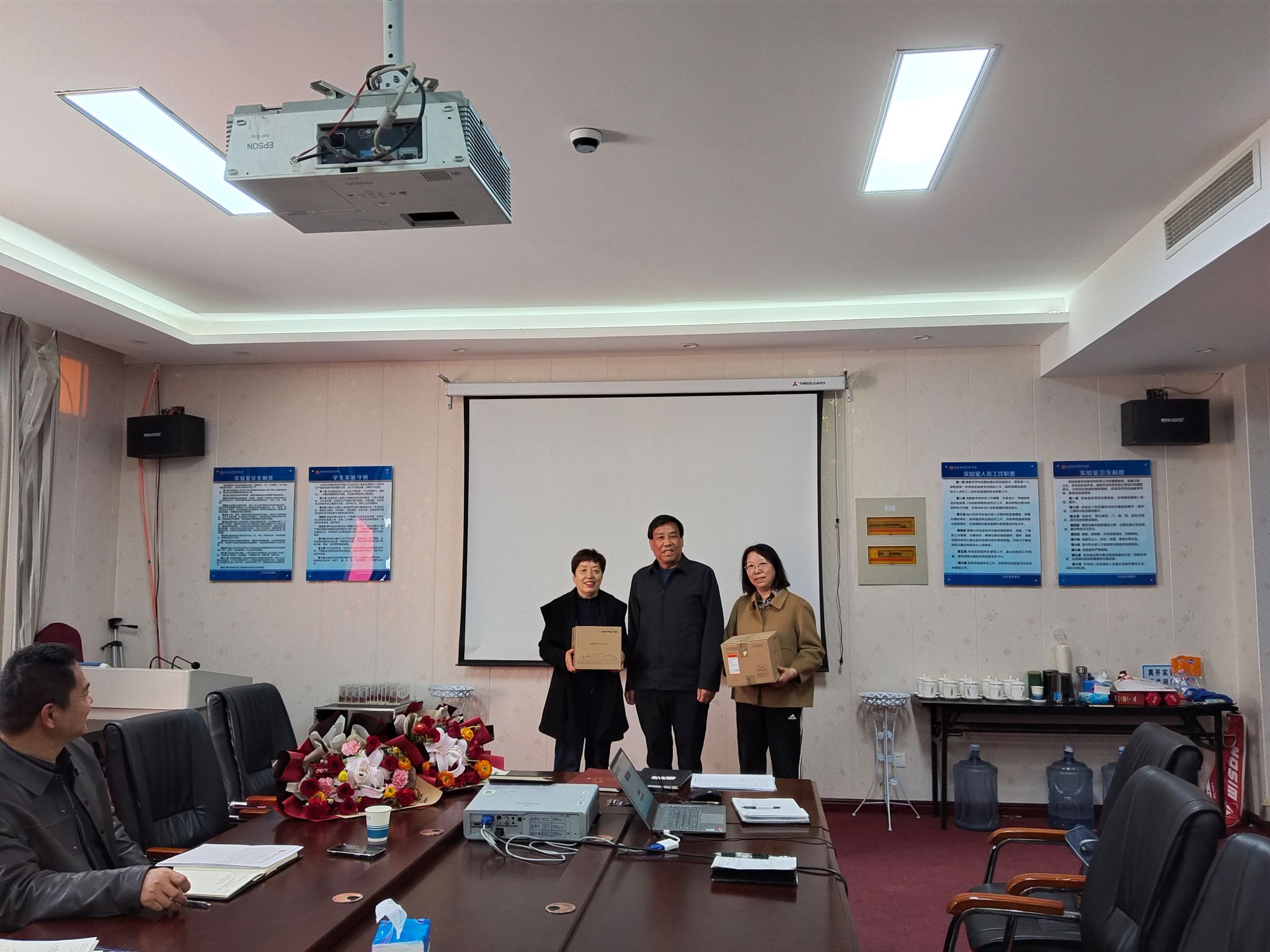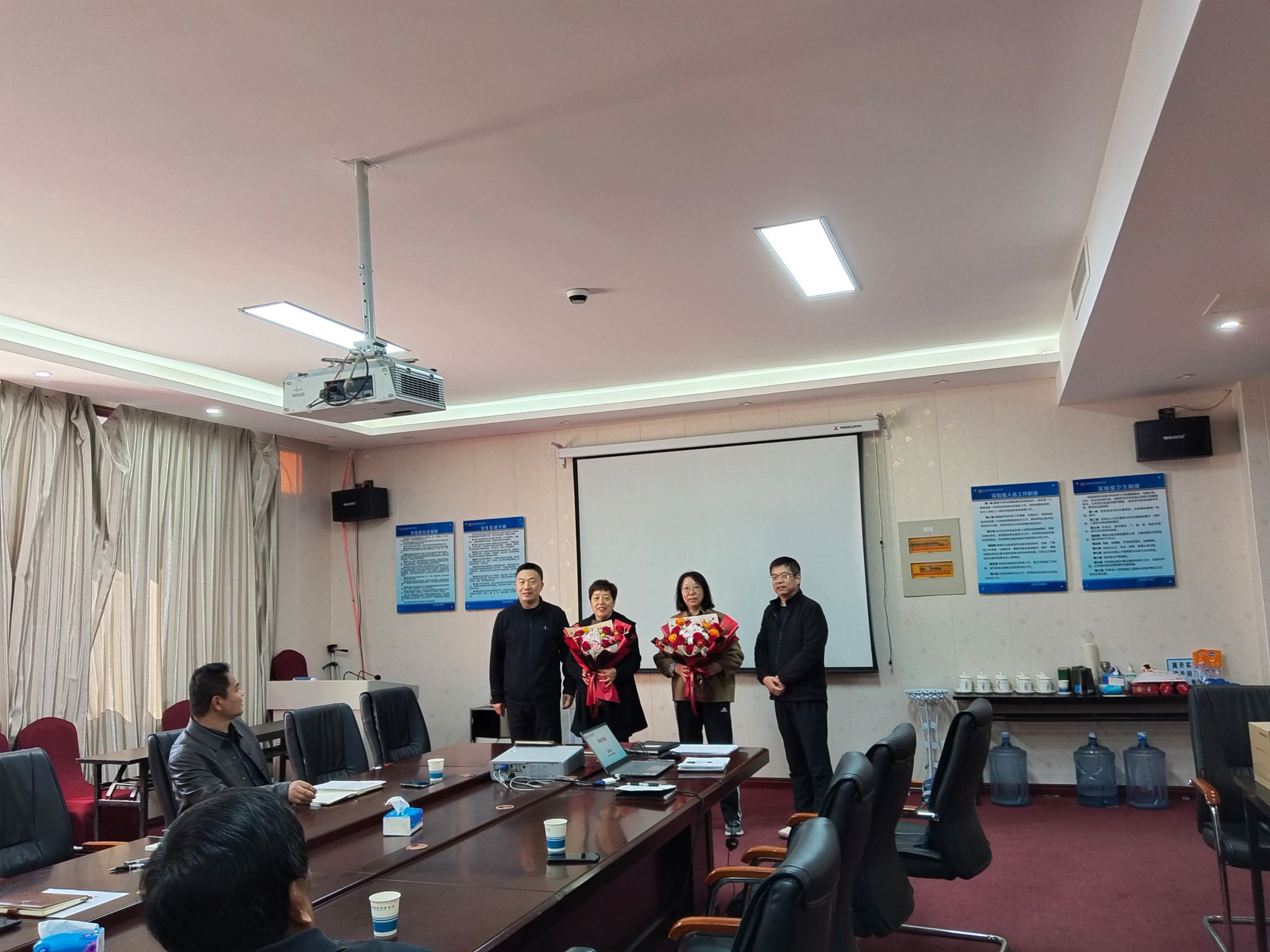 权太举和王德静代表williamhill英国中文为两位退休教师献上鲜花,感谢她们多年来为学校、学院教育事业的辛勤付出和无私奉献,祝愿她们的退休生活如鲜花般绚烂。浮历官代表离退处祝贺两位教师光荣退休并送上纪念礼品。