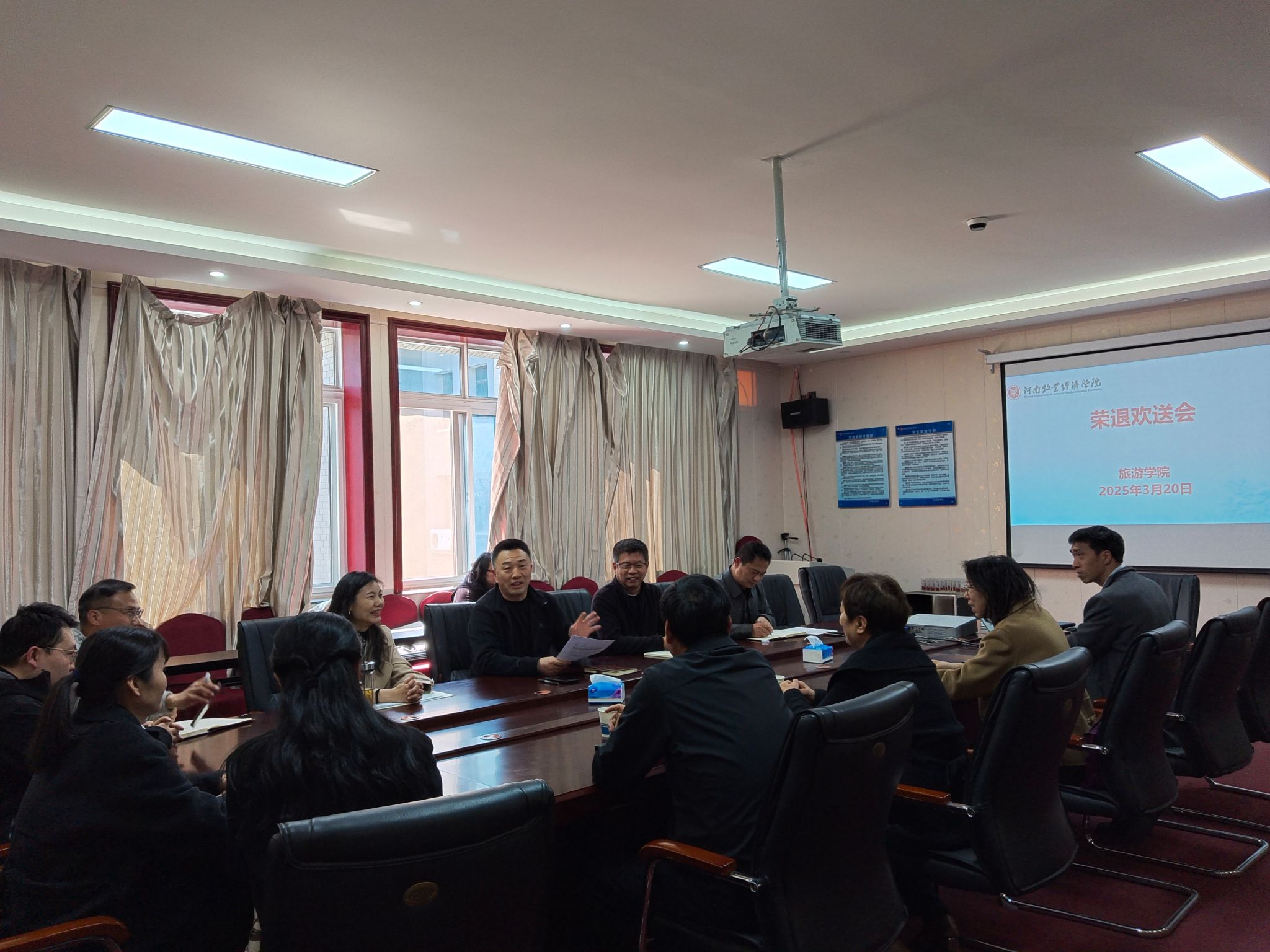 欢送会上,学院党委书记权太举宣读退休文件,介绍了两位教师的基本情况并致诚挚的欢送词。院长王德静代表学院教职工祝贺两位教师开启人生新篇章,并表示黄琴书记、赵红书记是学院发展的见证者和建设者,希望她们继续关心学院发展,激励后辈继续前行。