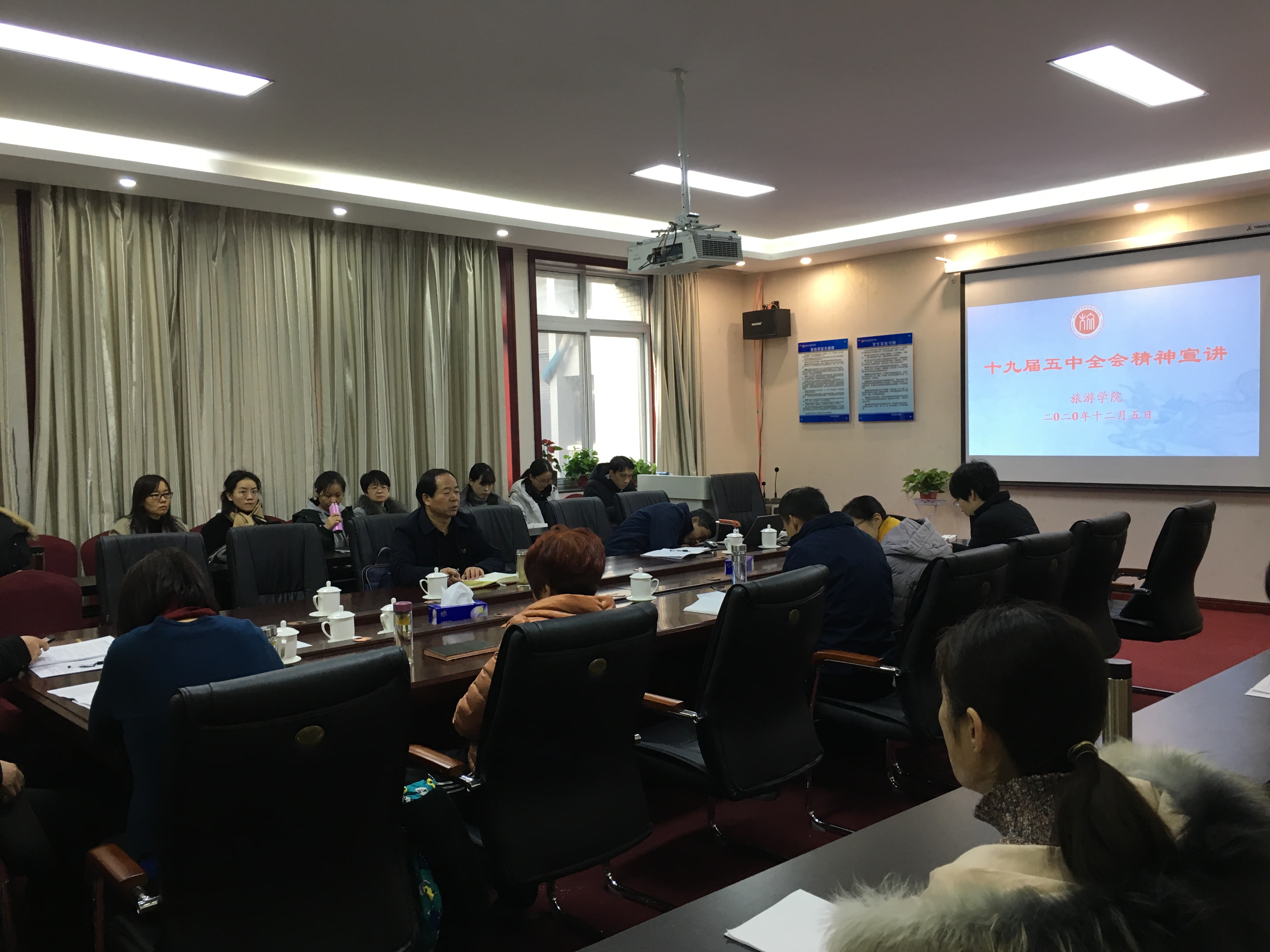为进一步学习贯彻党的十九届五中全会精神,推动教职工政治理论学习走深走实,12月5日,williamhill英国中文在二号教学楼C423会议室举行党的十九届五中全会精神宣讲报告会,院党委书记李喜民作宣讲报告。我院全体教职工参加报告会。